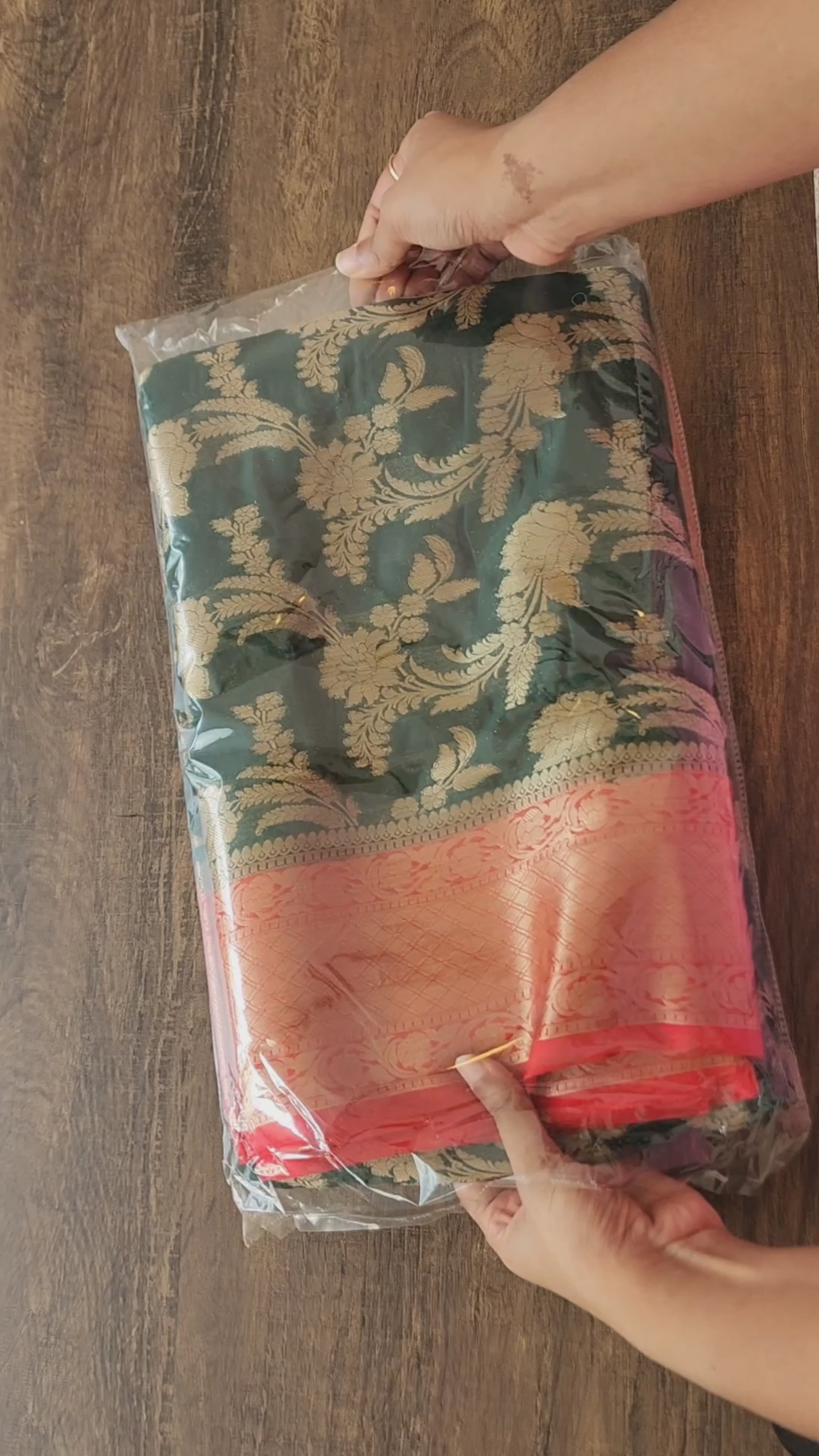 Premium Banarasi Silk: Luxurious fabric with a soft, smooth texture for a graceful drape.