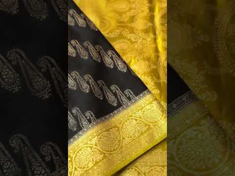 Classic Black Satin Mashru Silk Saree with Gold Zari Border