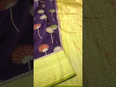 Dark Purple Semi Georgette Silk Saree with Pastel Green Border