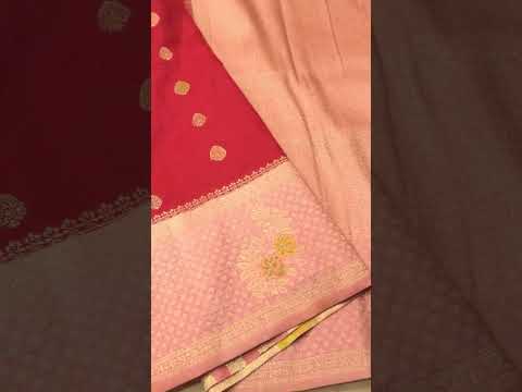 Radish Red Crepe Georgette Silk Saree with Light Pink Border