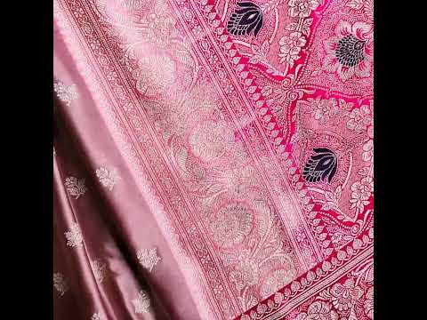 Dusty Mauve Pure Banarasi Katan Silk Saree with light Gold Zari Weaving