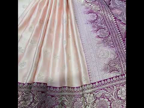 Pastel Pink Pure Banarasi Katan Silk Saree with Magenta Border