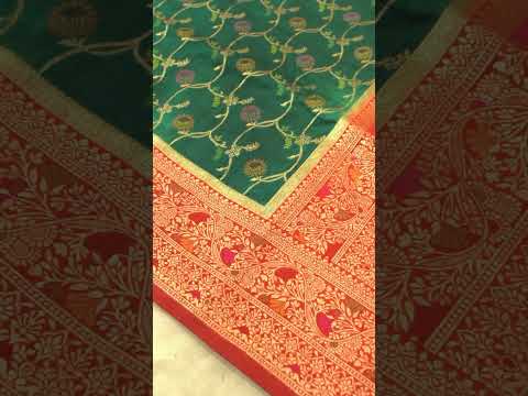 Bottle Green Dupion Patola Saree with Rust-Red Border & Intricate Gold Zari Work