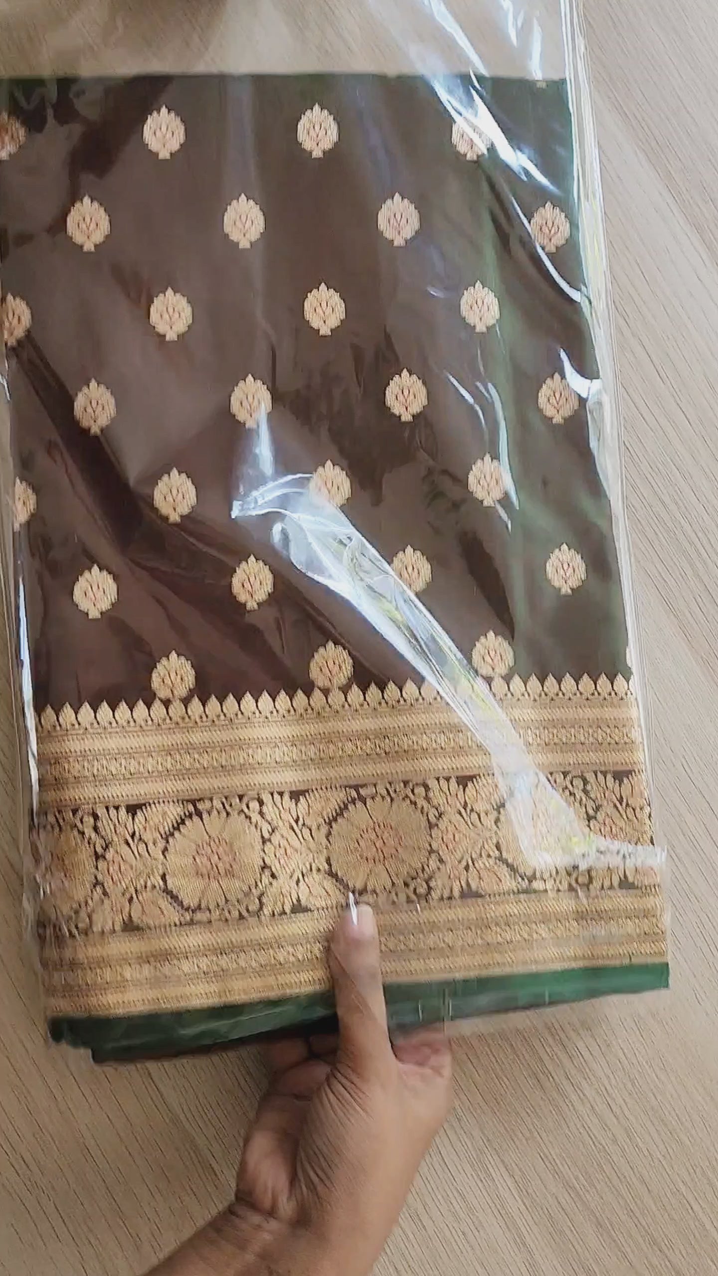 Experience timeless elegance with our luxurious Brown-Green Banarasi Silk Saree with Golden Zari Weave, designed to make every occasion special. Crafted with intricate detailing and a rich traditional touch, this saree is a perfect blend of heritage and sophistication.