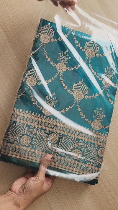 Weaving: Exquisite golden zari with traditional floral & paisley designs