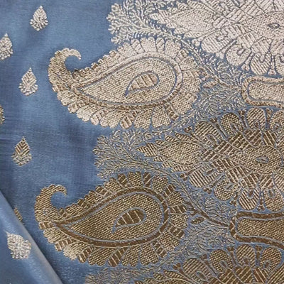 Rich Greyish Blue Banarasi Silk Saree with Gold Zari Weaving