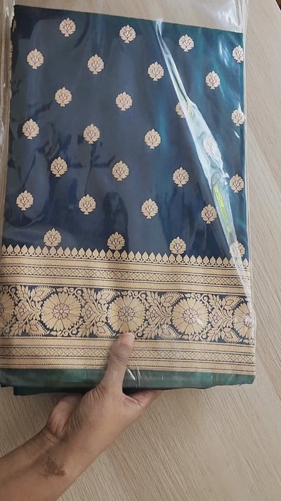 Royal Greenish-Blue Banarasi Silk Saree with Golden Zari Weave