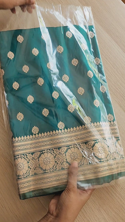 Royal Turquoise Green Banarasi Silk Saree with Golden Zari Weave